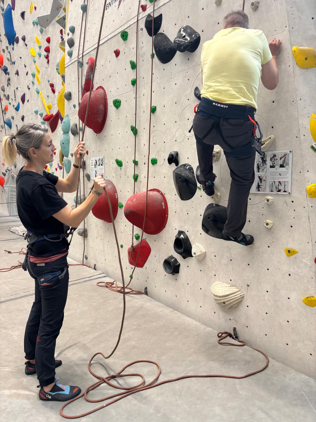 Passionnée par l’escalade et ses bienfaits, j’ai suivi une formation en escalade thérapeutique et suis formée par l’ASSE (Association des Salles d’Escalade Suisses) pour encadrer des groupes.